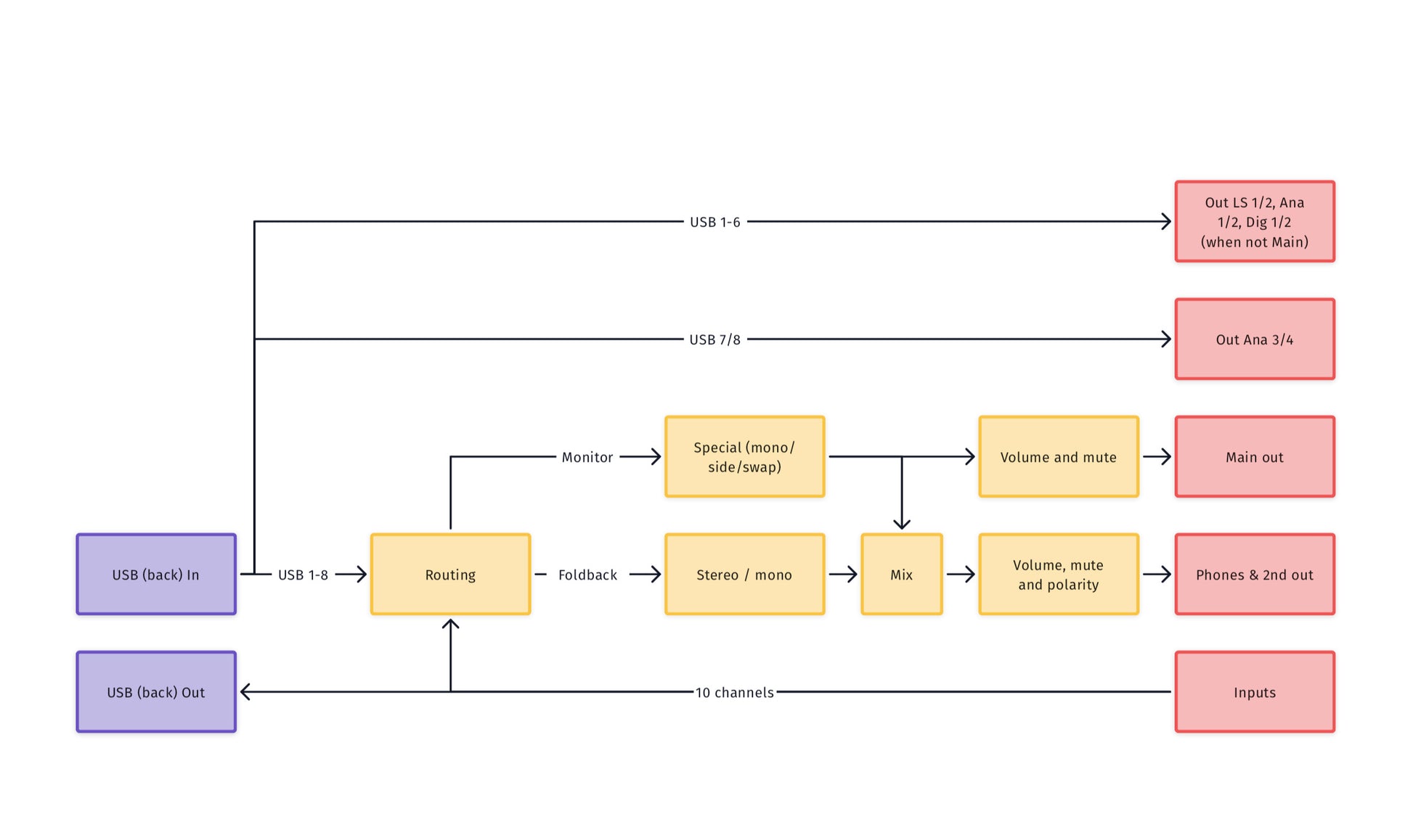 • Foldback for latency free monitoring